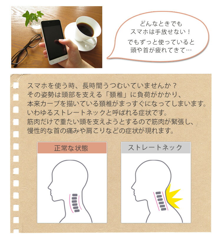 その他商品説明 ■スマートフォンを見る、うつむいている姿勢は首には大きな負担がかかっています。